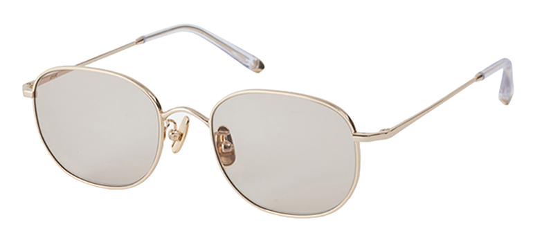 薄いレンズカラーとゴールドメタルフレームで、かけるだけでこなれた雰囲気に。