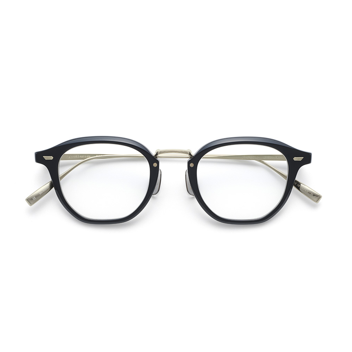 ウェリントンをベースとしたレンズシェイプは、レンズ下方で角を立てた”シモカク”を採用。