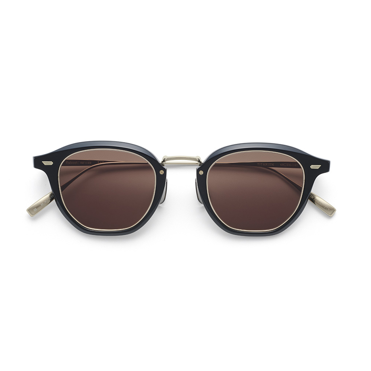 ウェリントンをベースとしたレンズシェイプは、レンズ下方で角を立てた”シモカク”を採用。