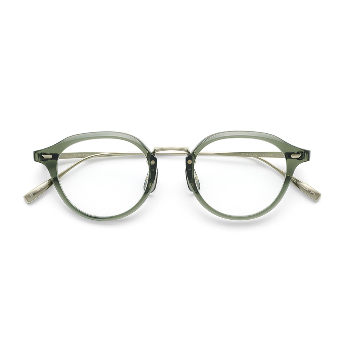 ボストンをベースとしたレンズシェイプは、レンズ上方で角を立てた”クラウンパント”を採用。