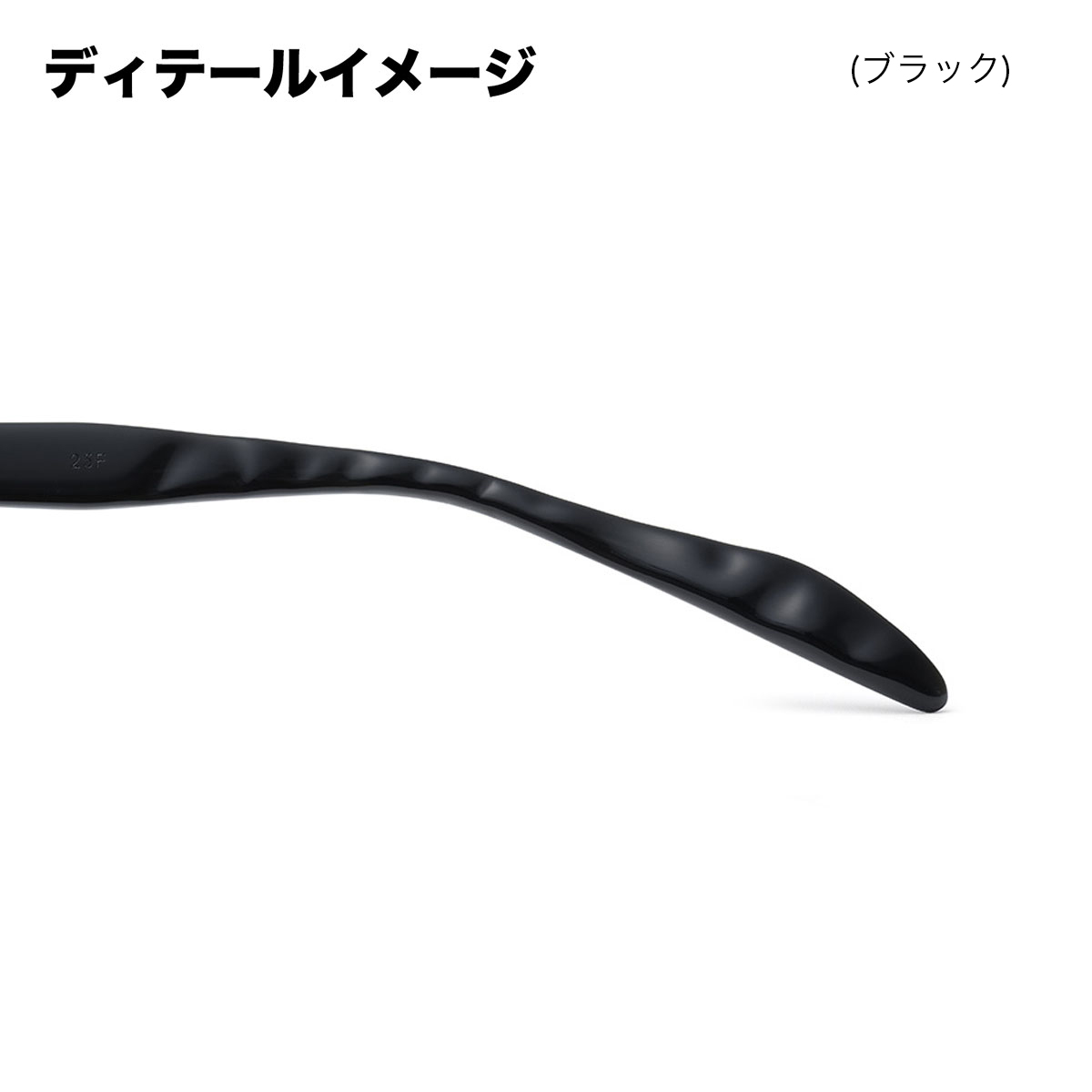 テンプル先の外側には"シャープでストレートな光線"をイメージするエングレープが、内側には柔らかい光の溜まりを表現した"水面の反射光"が巧みにデザインされています。