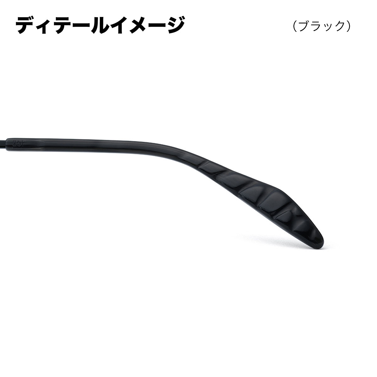 また、テンプルのメタル部分を凸型に造形することで、光の反射によりシャープなコントラストを演出。