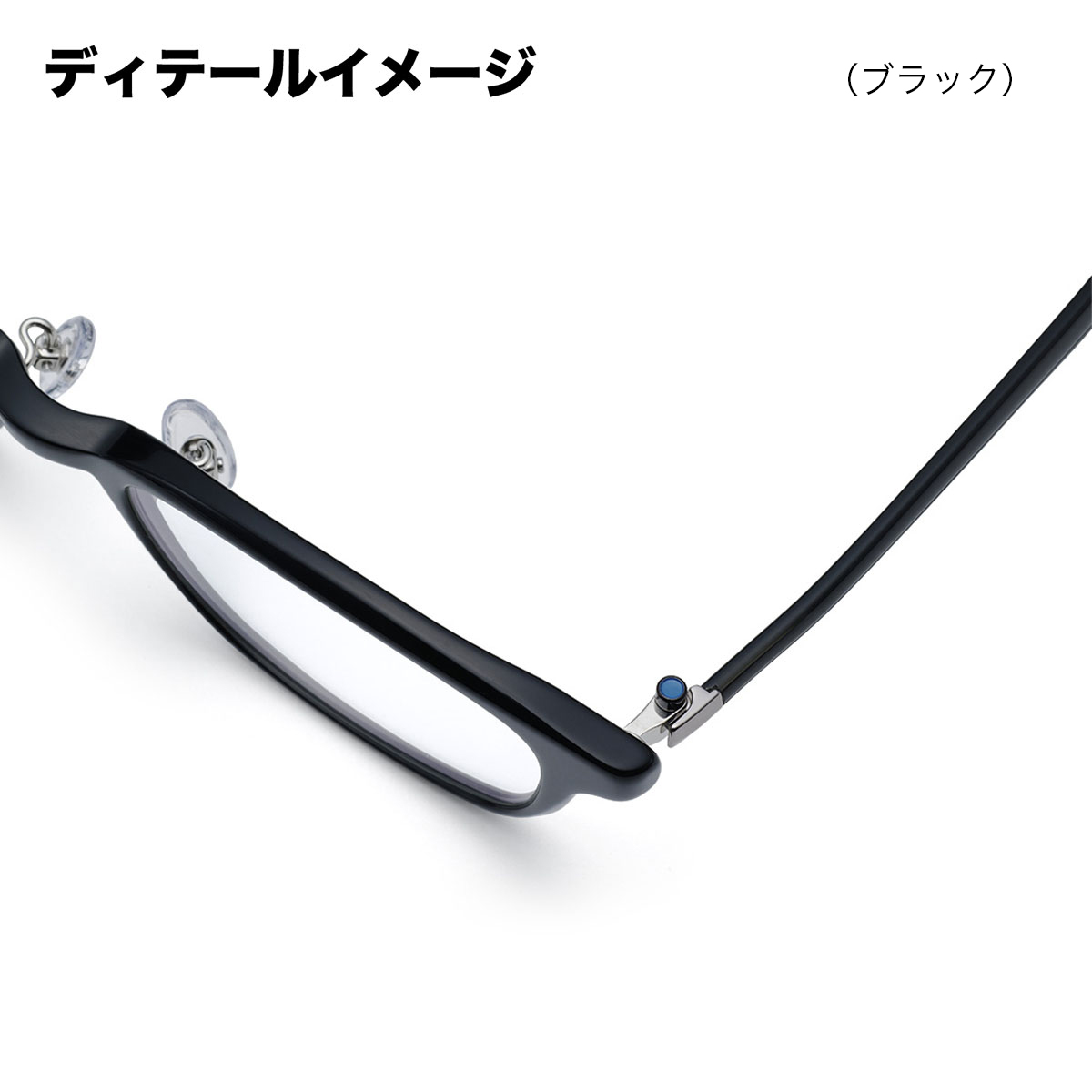 ブランドのキーカラーとなる“ブルー”のカラーリングが施された丁番のネジは、テンプルを開閉してもネジが緩みにくい機能的な側面も持ち合わせています。【デザインディテール】
