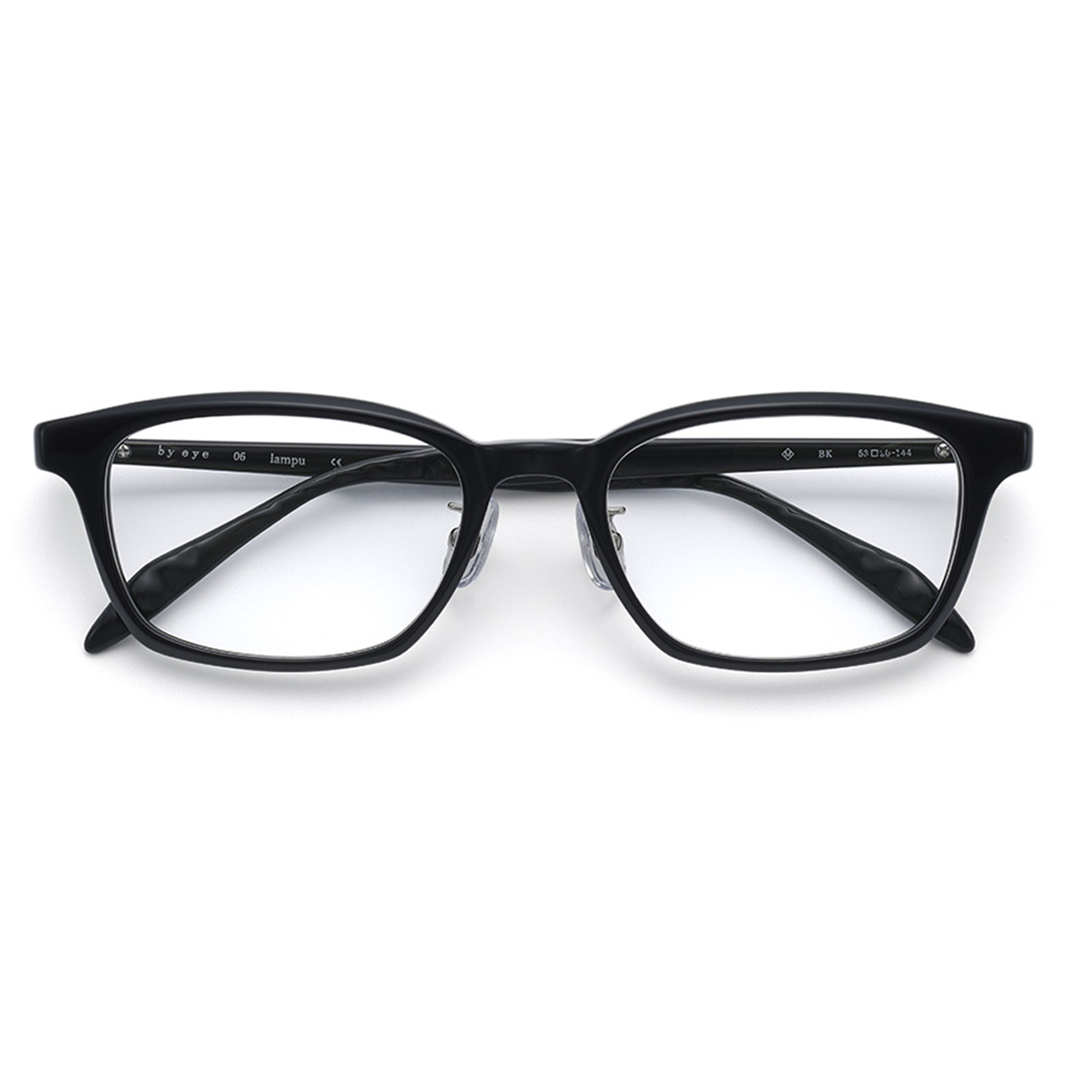 テンプル先の外側には"シャープでストレートな光線"をイメージするエングレープが、内側には柔らかい光の溜まりを表現した"水面の反射光"が巧みにデザインされています。【by eye(バイアイ)】