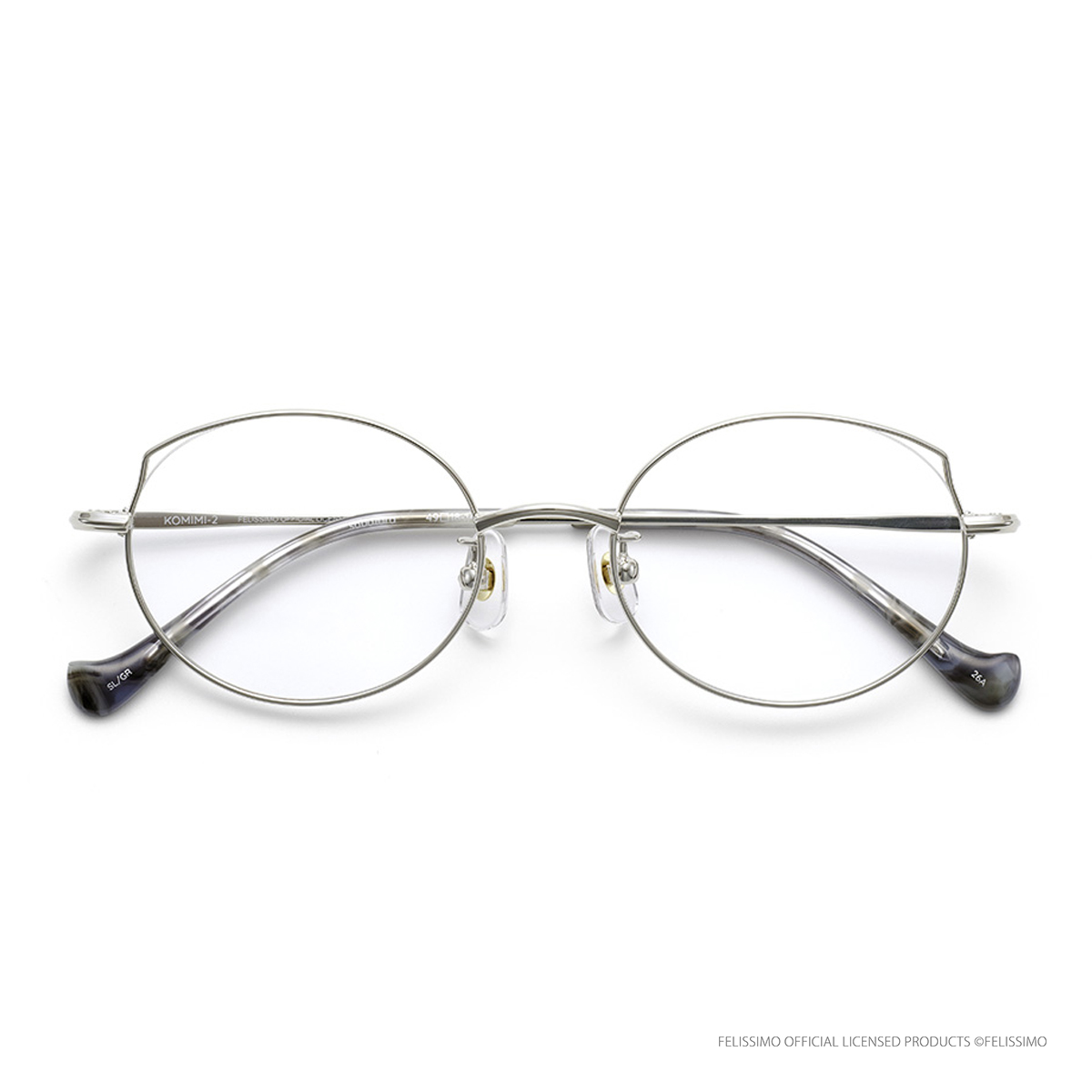 子猫をイメージした小ぶりなデザインで、リムのトップラインはイカ耳のような耳を立て、スリット仕様になっています。【オリジナルケース&メガネ拭き】