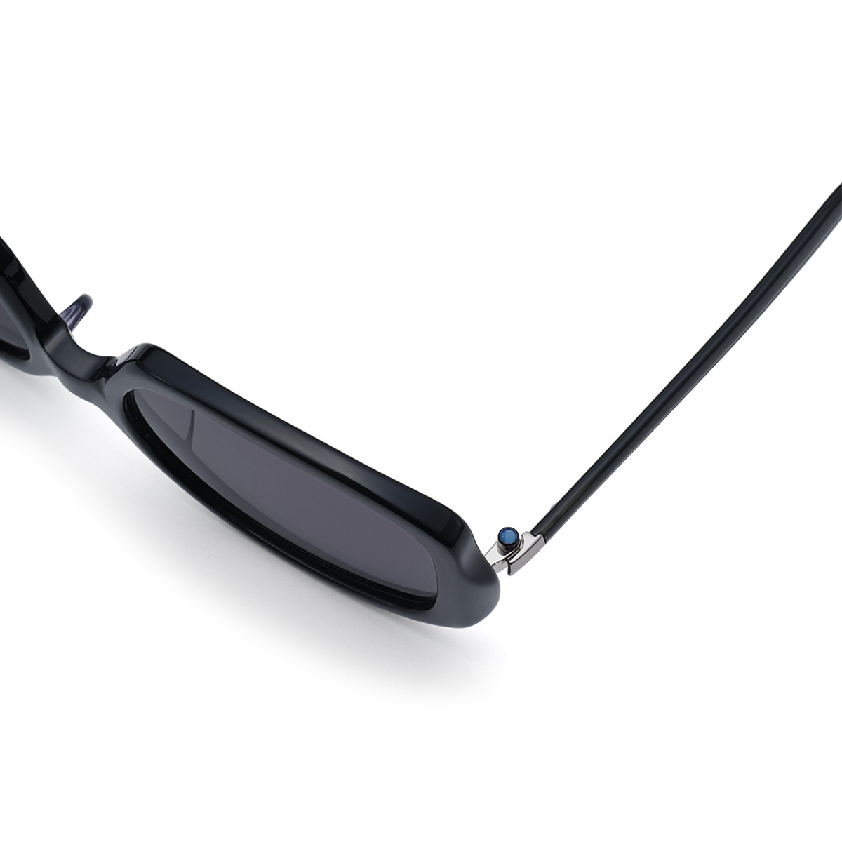 ブランドのキーカラーとなる“ブルー”のカラーリングが施された丁番のネジは、テンプルを開閉してもネジが緩みにくい機能的な側面も持ち合わせています。【デザインディテール】