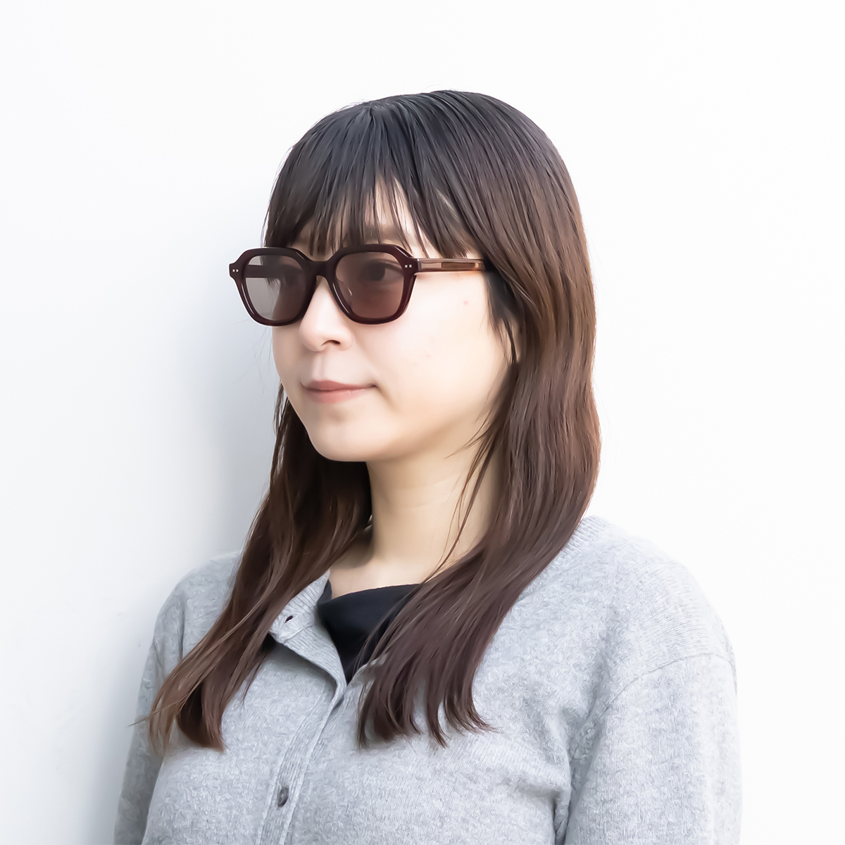 横顔からも「こだわり」を感じさせる、重厚感のあるサングラスです。