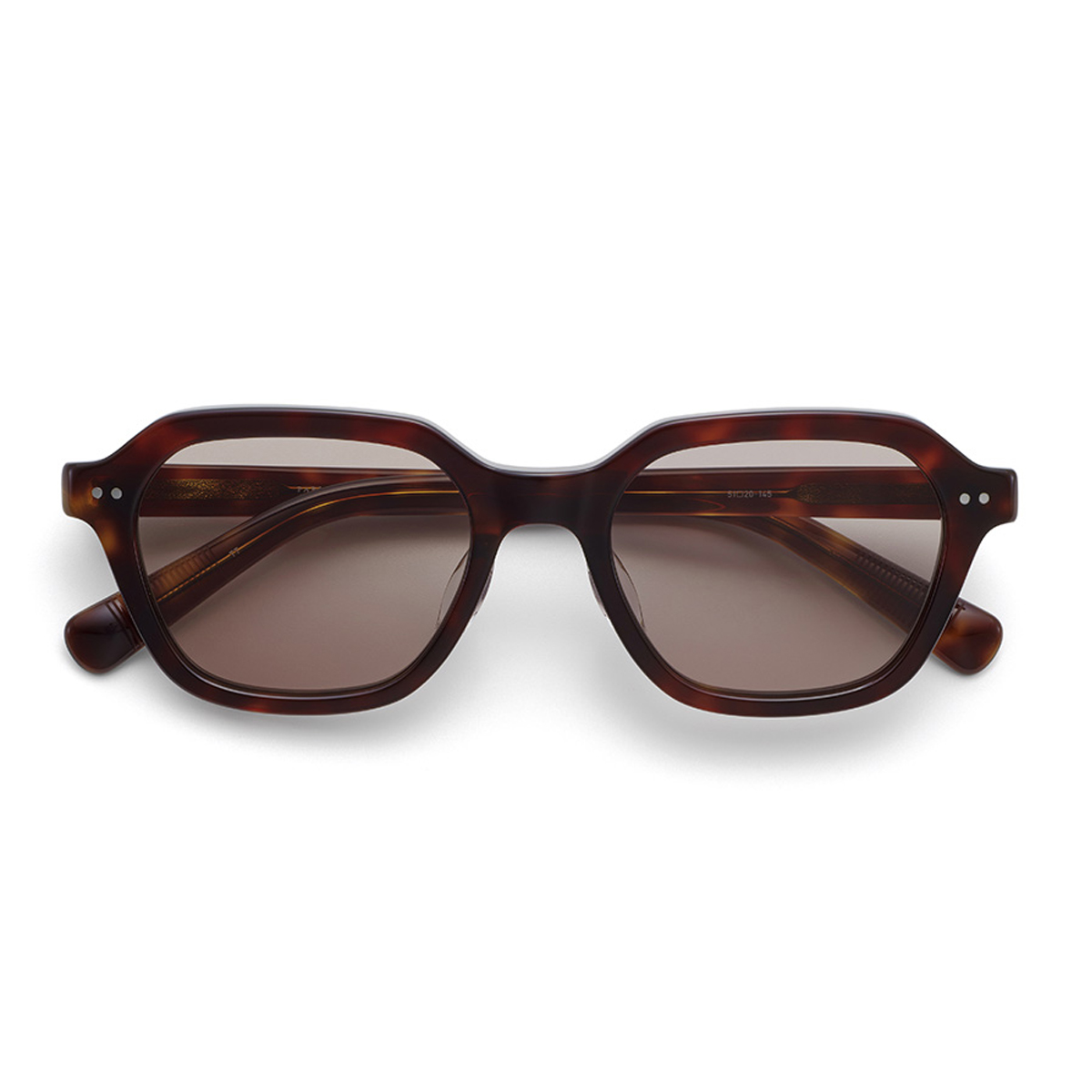 しっかりとした厚みのあるテンプルと、フロントのカシメがアクセント。