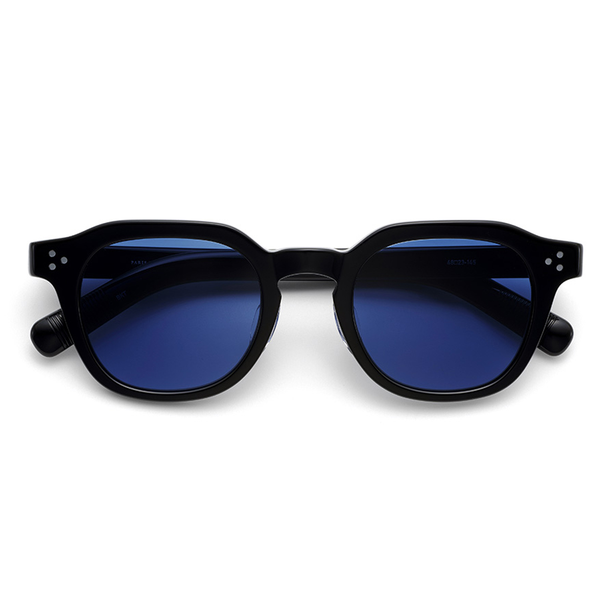 王道のブルーレンズのモデルには、紫外線量で濃度が変わる最新の調光レンズを搭載。