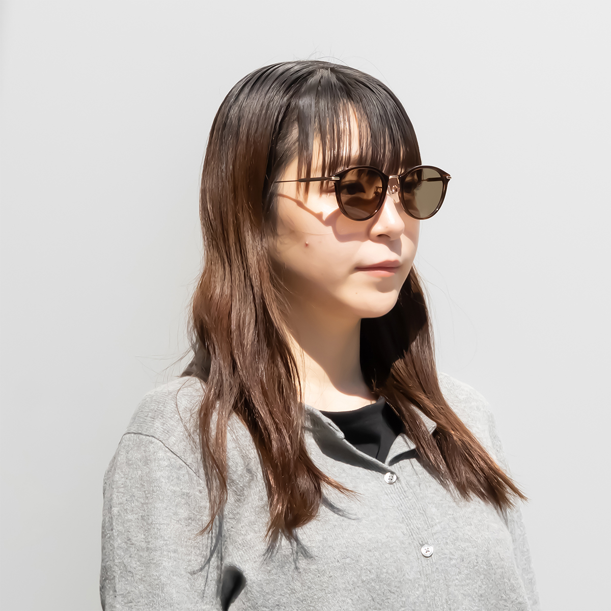 ブラウンフレームには、クリアからブラウンへと色が変化する調光レンズを採用。