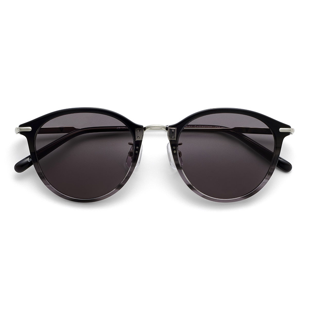 - クラシカルな雰囲気を残しながら、顔立ちを明るく見せる細身のラインと、華やかなメタルパーツが特徴のコンビネーションサングラス。
