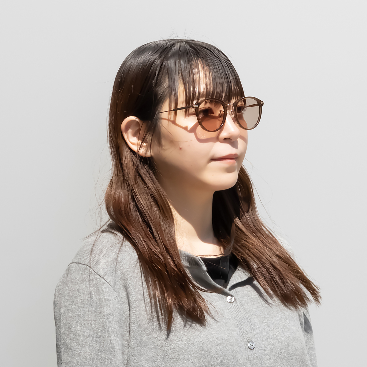 ブラウンフレームには、クリアからブラウンへと色が変化する調光レンズを採用。