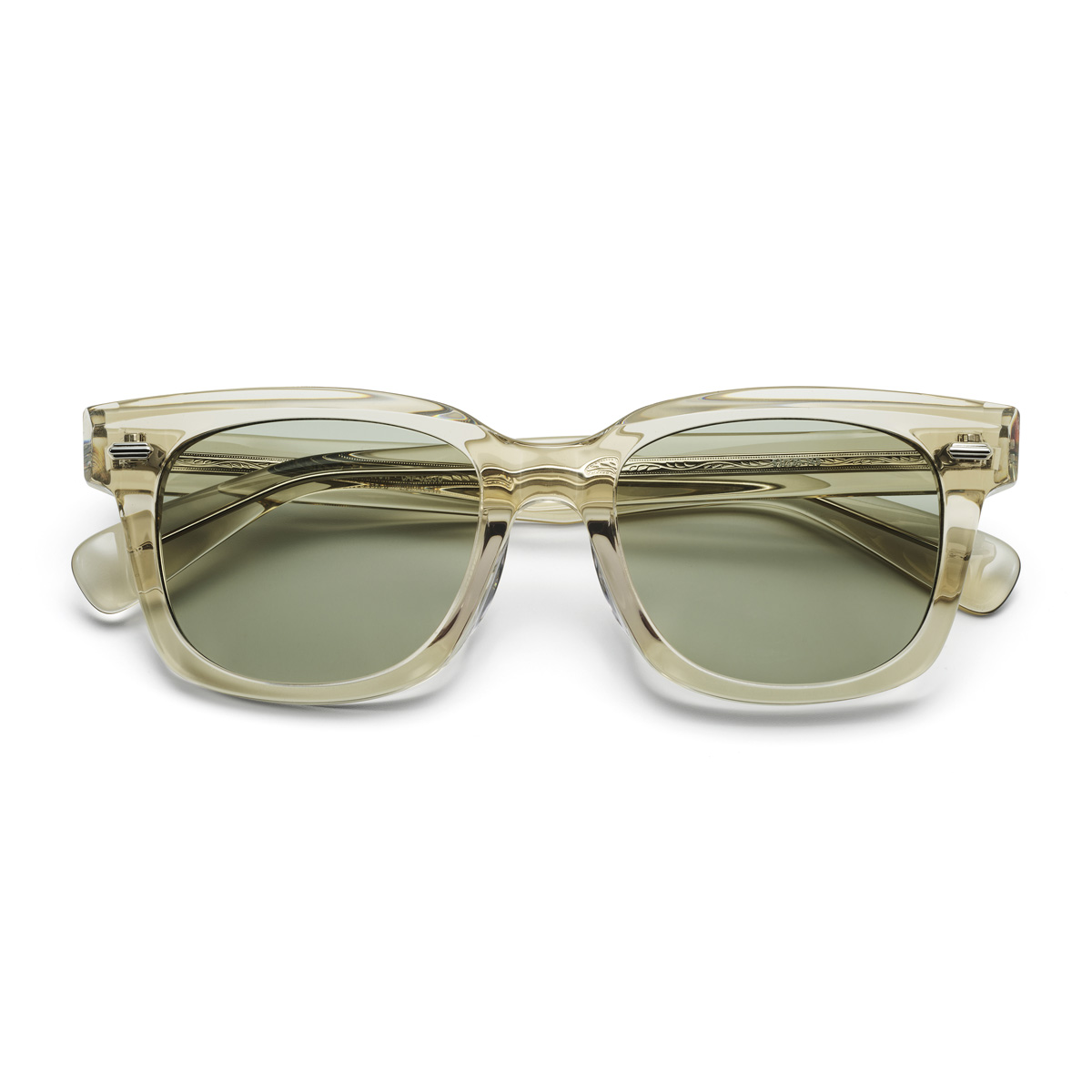 - 王道のウェリントンシェイプに8ミリ厚の生地を使用した、重厚感のあるサングラス。