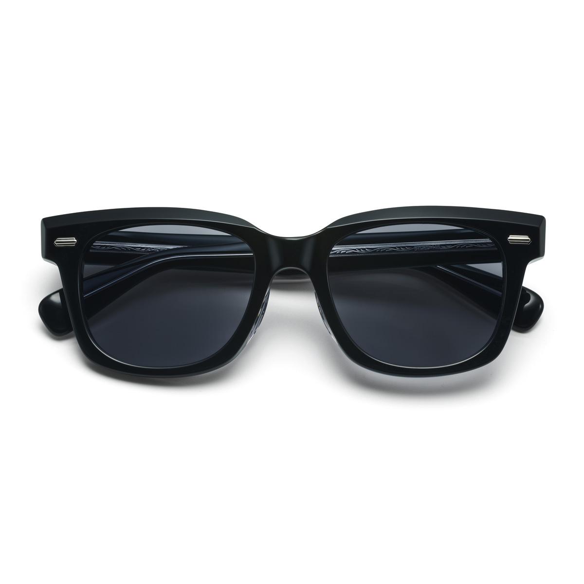 - 王道のウェリントンシェイプに8ミリ厚の生地を使用した、重厚感のあるサングラス。