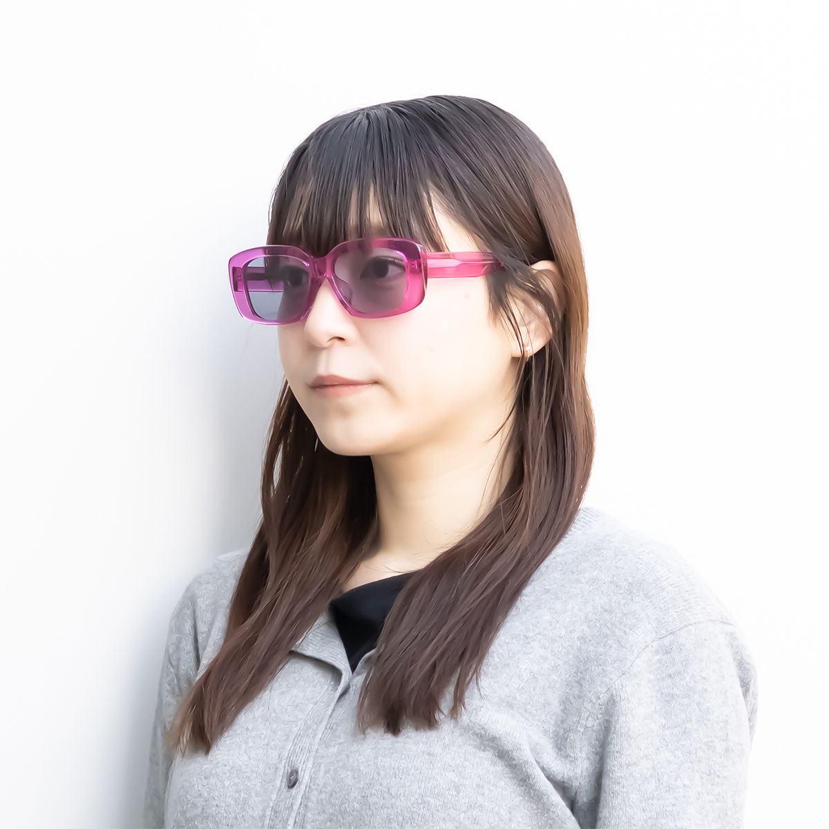 お顔立ちをシャープに引き締める直線的なラインが、いつものコーディネートを一瞬でモードな装いへと塗り替えます。