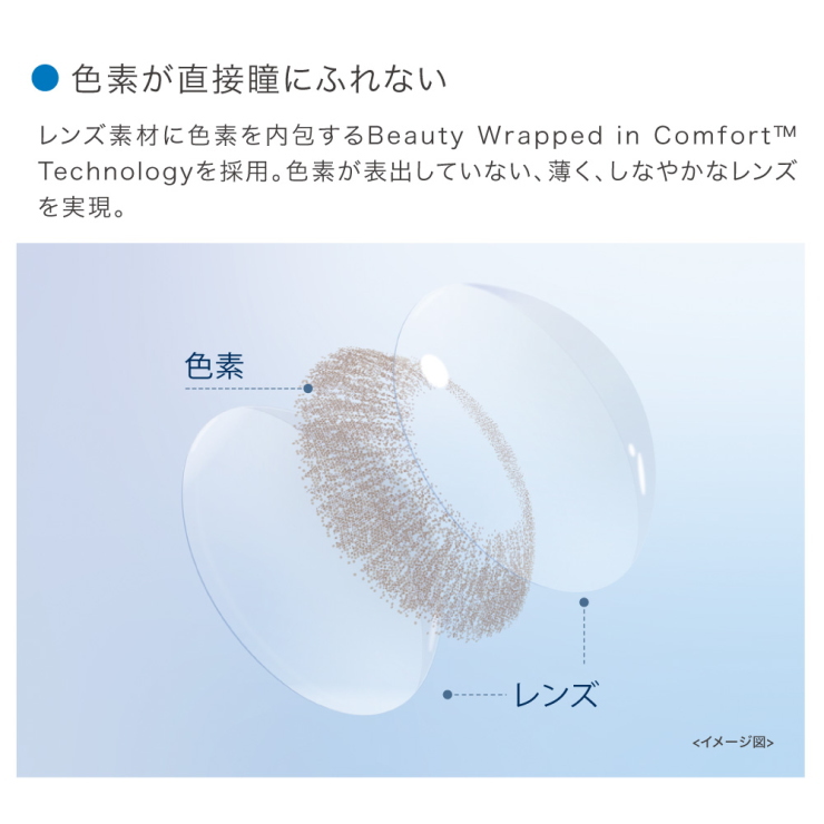 瞳本来の美しさを引き出す自然で美しいデザインに加え、安全性や装用中の快適性にも配慮しています。